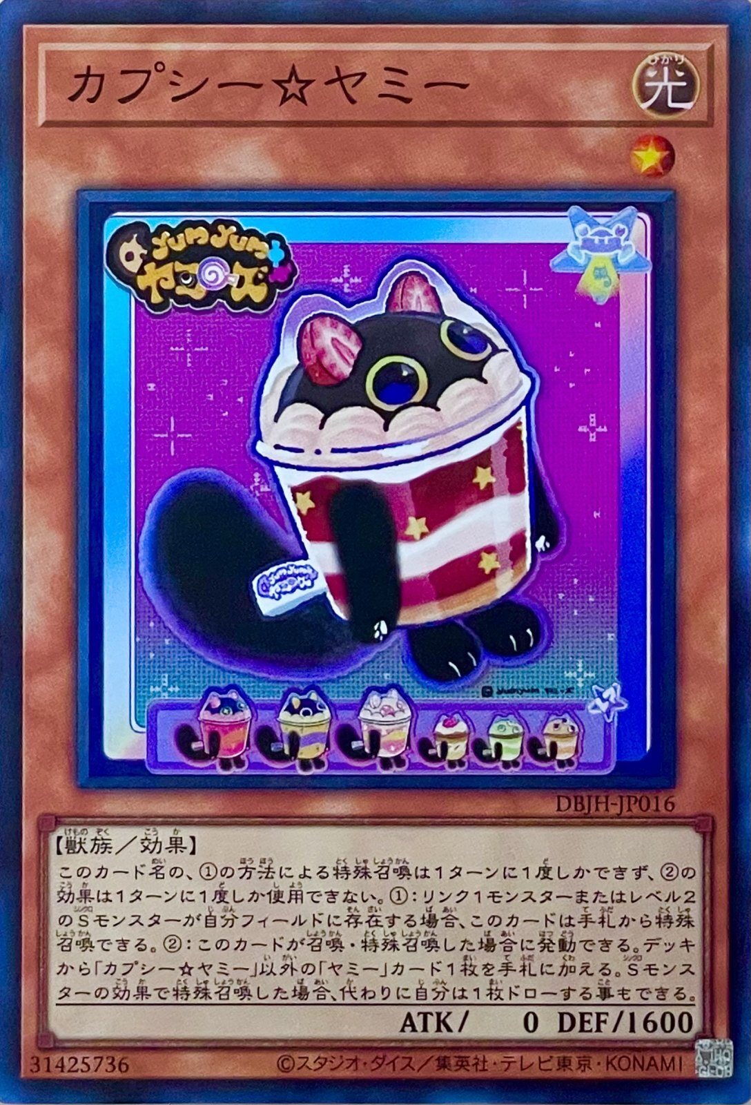(2):このカードが召喚・特殊召喚した場合に発動できる。デッキから「カプシー☆ヤミー」以外の「ヤミー」カード1枚を手札に加える。Sモンスターの効果で特殊召喚した場合、代わりに自分は1枚ドローする事もできる。